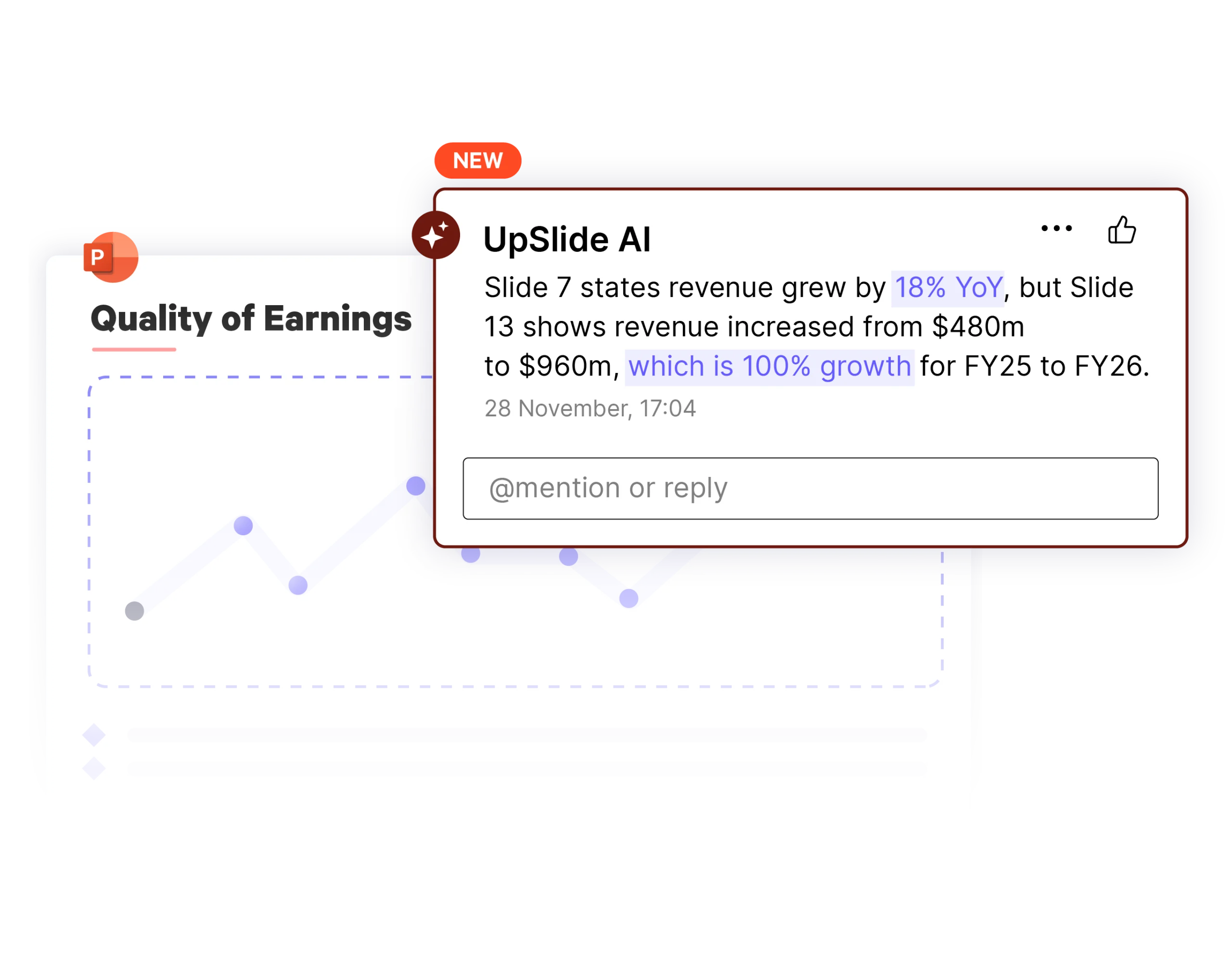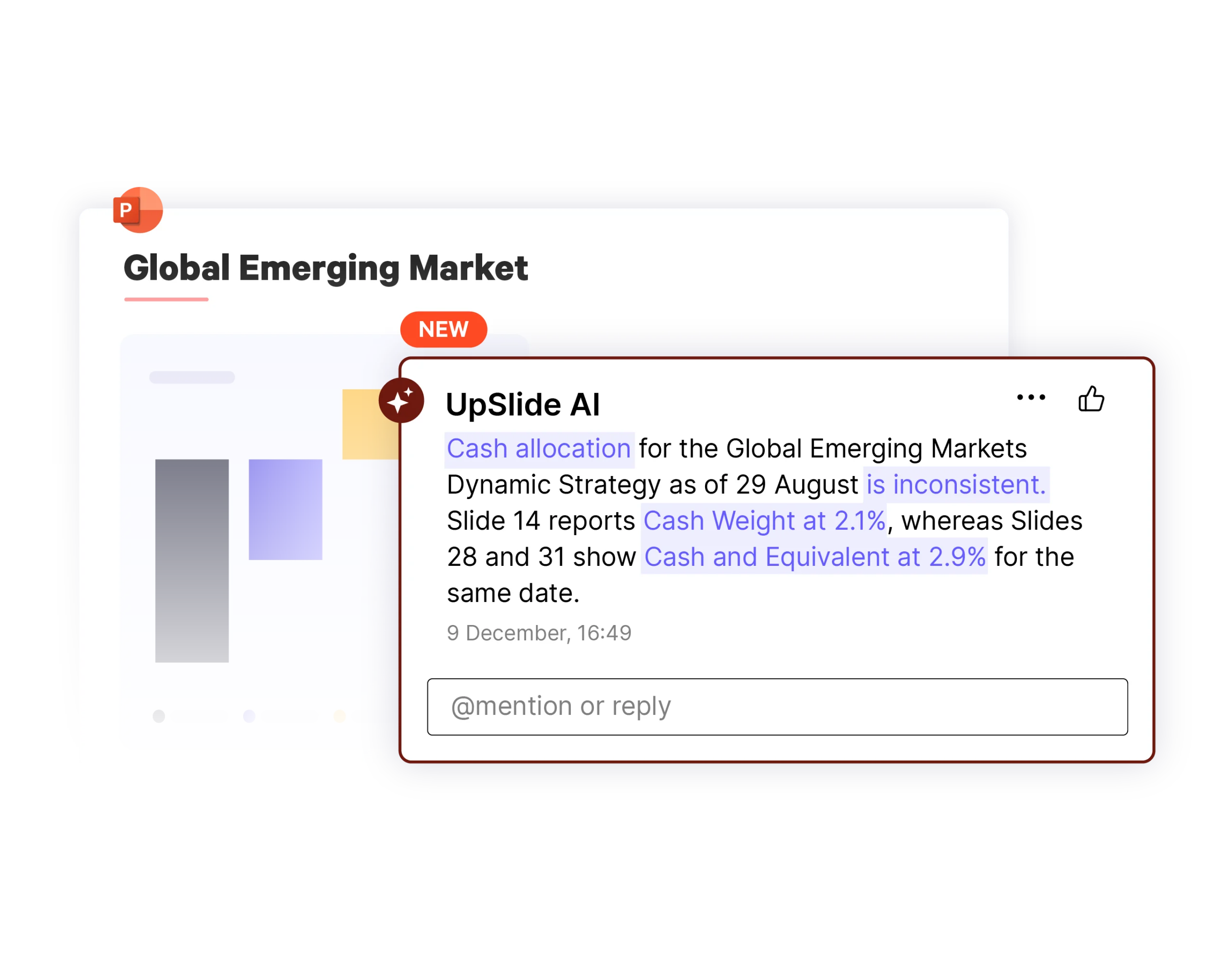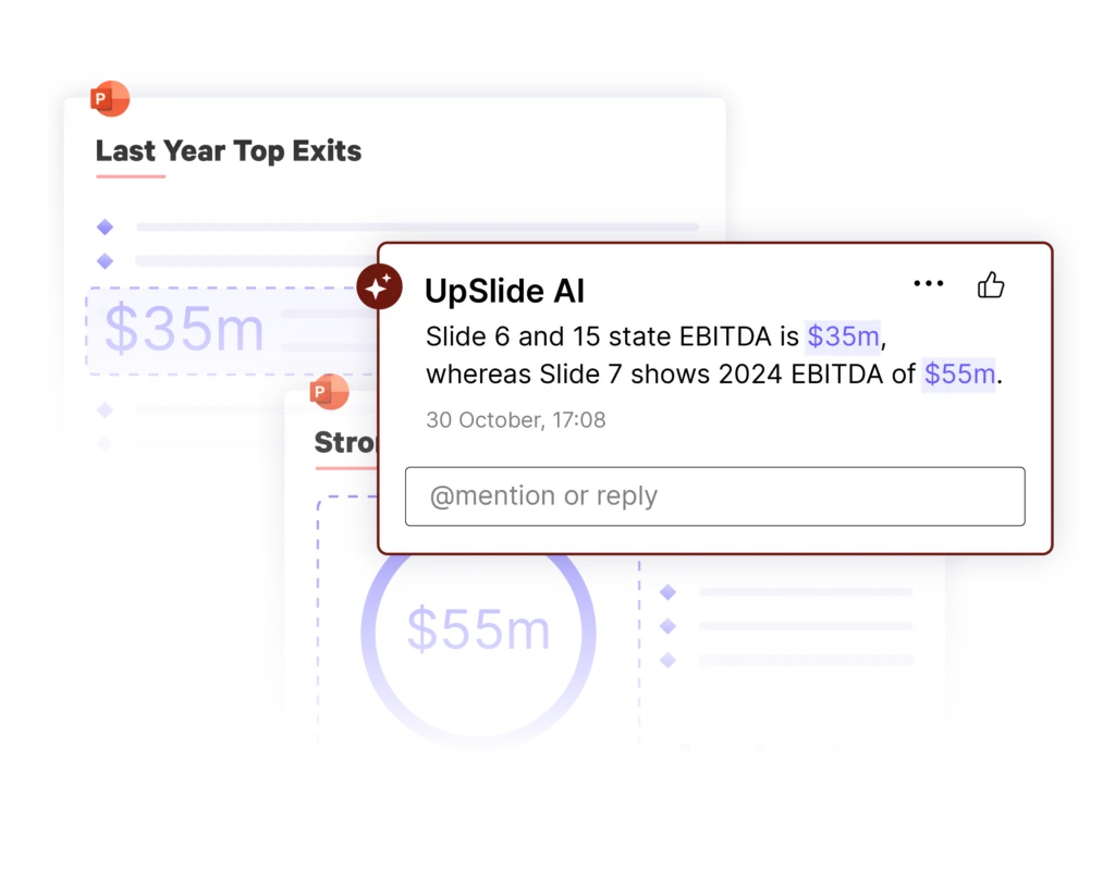 Testez et sécurisez les chiffres et les messages de vos documents financiers complexes grâce à une relecture assistée par l’IA, directement dans PowerPoint.
